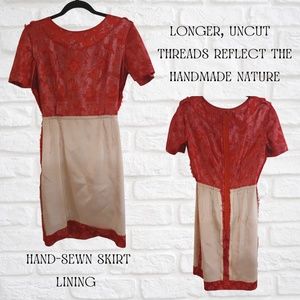 Vintage Red 1950s Rockabilly Brocade Shimmer Party Fit and Flare Tea Dress
