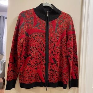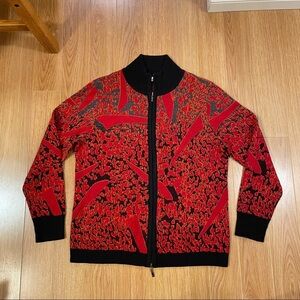 Vintage Red Black Wool Bomber Sweater Jacket Made in Italy - M