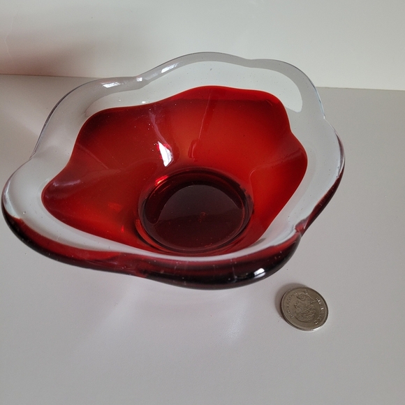 Vintage Red Clear Encased Art Glass Decorative Bowl Free Form