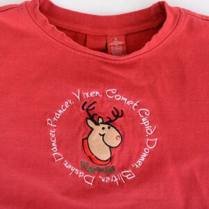 Vintage Red Embroidered Reindeer Rudolph Christmas Crewneck Sweater XL