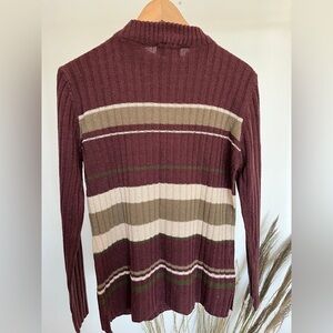Cozy Burgundy green and cream ribbed knit sweater with stripes. Excellent used condition size small