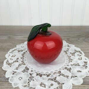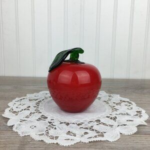 Vintage Red Glass Apple Paperweight, Teacher's Gift, Classroom Decor
