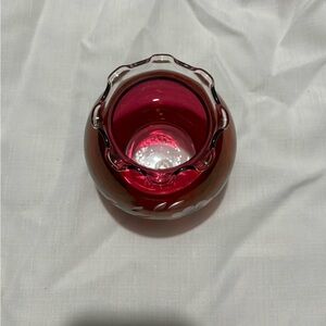 Beautiful red glass vase with a delicate floral design. Perfect for adding a touch of elegance to any room.