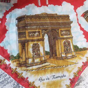 Vintage Red Gold Scarf Made in Italy Eiffel Tower Arc de Triumph Moulin Rouge