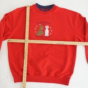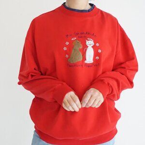 Vintage Red Grandmacore Embroidered Dog And Cat Crewneck Sweater XL