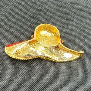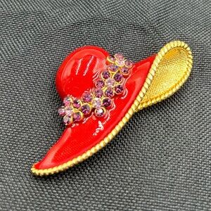 Vintage Red Hat Enamel Brooch Gold-Tone Purple Rhinestone Red Hat Lady