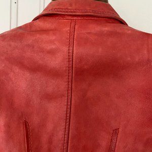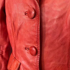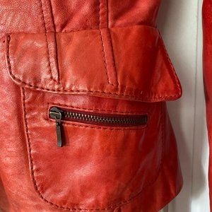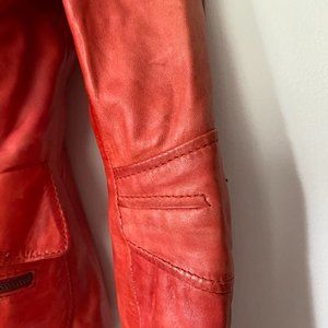This red leather motorcycle bomber jacket is in excellent vintage condition. NO rips, tears or loose seams.