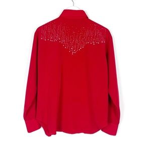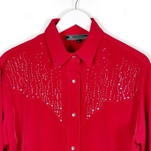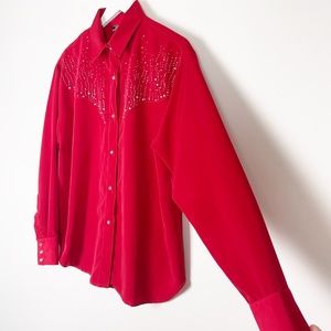 This is beauty! Red button up blouse....and yes...the buttons are snap rhinestones!