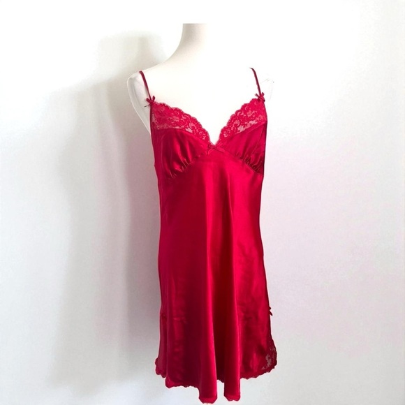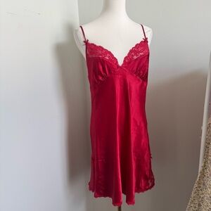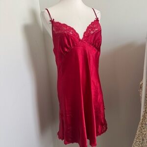 Vintage Red Satin & Lace Slip Dress — 90s Valentine Lingerie Aesthetic L