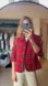 Vintage Red Tweed Plaid Knit Woven Raw Hem Fringe Blazer Jacket Gold Buttons