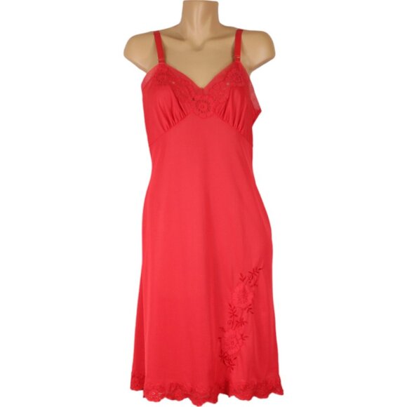 Vintage Red Vanity Fair Dress Slip Midi Length Size 34 Adjustable Straps SP75