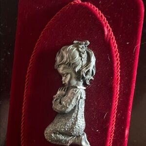 Elegant red velvet plaque featuring a praying child design. Perfect for home decor.