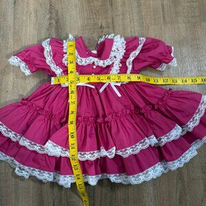 Vintage Red White Lace Baby Girl Dress Victorian 6-9M