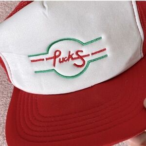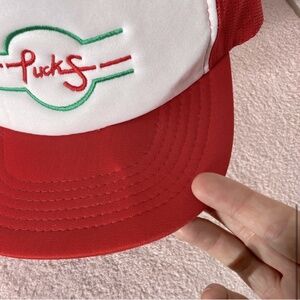 Vintage Red White Pucks Mesh Back Snap Back Trucker Hat