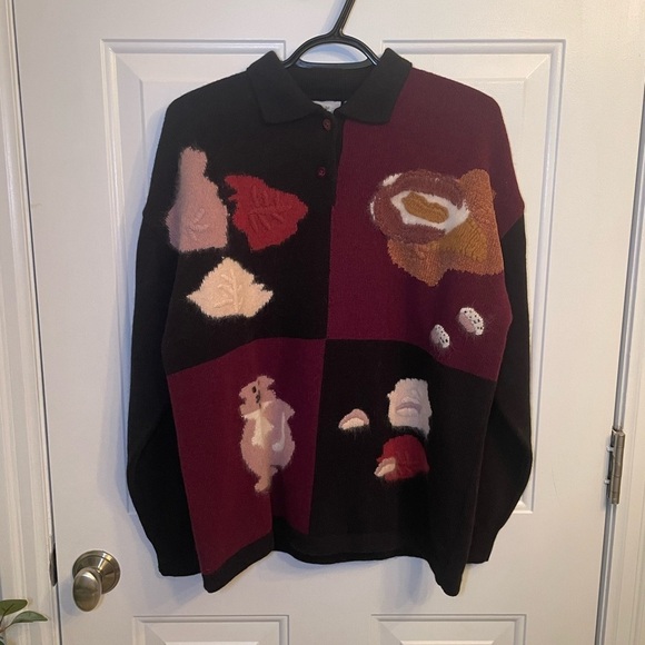 Vintage Red and Black Crew Neck Sweater with Unique Design