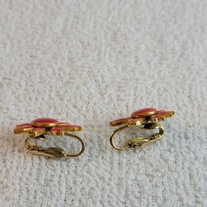 Vintage Red glazed clip on earrings flower poinsettia festive