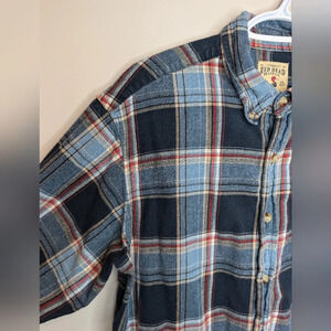 Vintage RedHead Shirt Men's XLT Long Sleeve Button Up Navy Blue Plaid Flannel