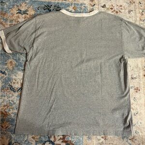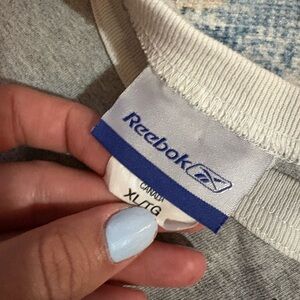 Classic Reebok t-shirt. Features gray fabric with white trim. Comfortable and stylish.