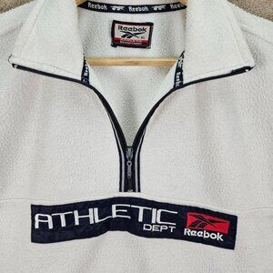 Vintage Reebok Mens Sweatshirt Size XL White 1/4 Zip Athletic Fleece Long Sleeve