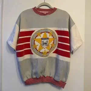 Printed logo, ribbed neckline and bottom cuff. Made of thick sweatshirt material