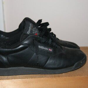 Low top Reebok aerobic shoes. Serious cushion sole. black leather.
