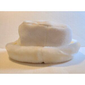 Vintage Reflections faux Ivory Fur Short Brim Quilting Hat Retro WOMEN Rose Pin