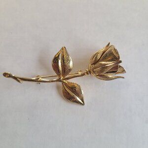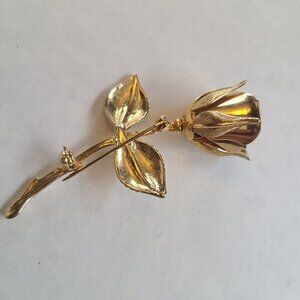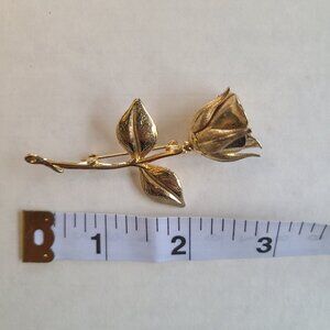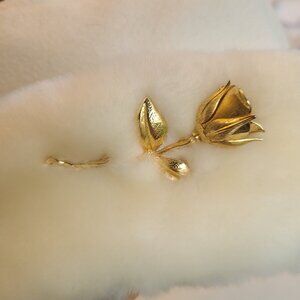 Warm, soft hat has a luxurious gold-tone rose pin as its highlight.