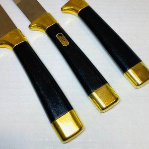 Vintage Regent Sheffield Carving 3 pc Knives Hollow Ground Stainless 24K Gold Pl
