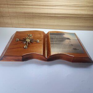 This beautiful vintage wood mantel clock features a religious poem known as "Footprints".