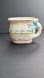 Charming ceramic mug shaped plater with embossed floral design. Features a blue bow and pink accents. Glossy finish