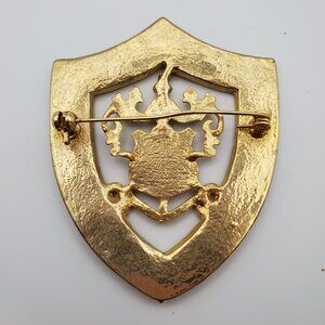 shield brooch high regency core gold stars navy fleur de lis lys crown anchor feathered leaves