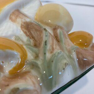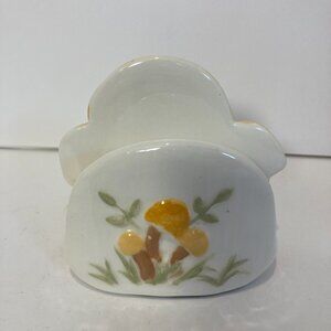 Vintage Retro 70s Mushroom Napkin Holder MCM Ceramic 4" Yellow White Kitchen