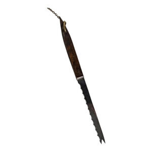 Stainless steel knife with wooden handle.