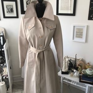 This one is made from fabric by Mar-Lo of Montreal. It is in fabulous condition looks never worn. Great details with the pockets cuffs and tapered seams. Light beige colour size medium with PTP 18 length 40” sleeve 24”