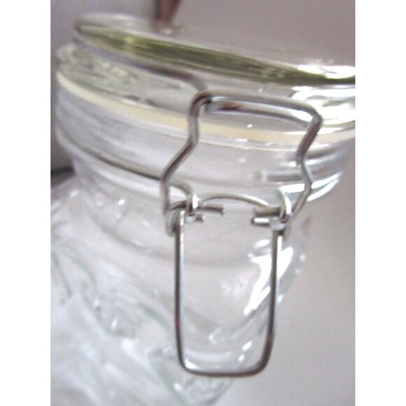Vintage Retro Clear Canister Pressed Glass - Metal Wire Bail - Mason Jar Hearts
