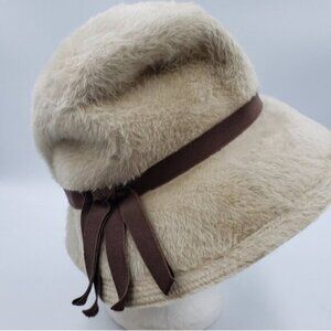 Vintage Retro Cloche Style Hat Ribbon Band Eaton's French Room Cream Brown
