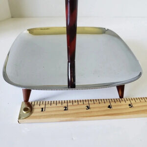 Vintage Retro/mid century modern Gourmates stainless steel serving tray with bakelite handle and feet.