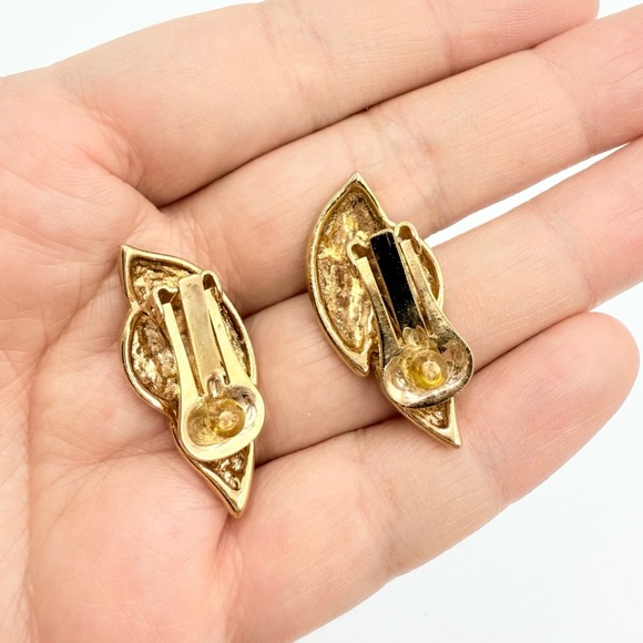 Vintage Retro Green Enamel Studs Clip On Earrings Gold Tone