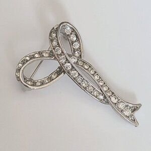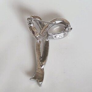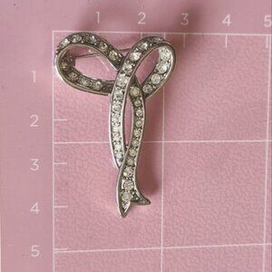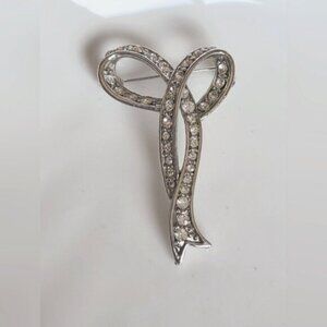 Beautiful Retro Vintage Rhinestone Sterling Silver Tone Bow Brooch Pin