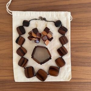 Vintage Retro Styled Polished Wood 3 Piece Jewelry Set