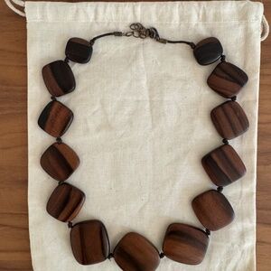 1) A 25" necklace with 13 polished wood squares with rounded sides, adjustable closed hook chain.