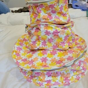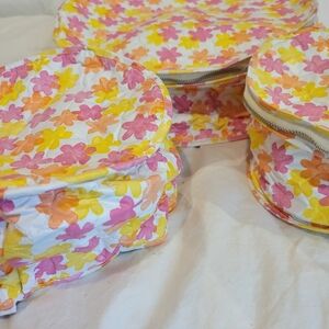 3 graduated sizes of China storage in matching vinyl pattern. 11" 7" 6 " and 4" high fully zipped all around designed to take at least 10 plates per unit probably dinner lunch and side sizes some yellow foam wraps included all good condition