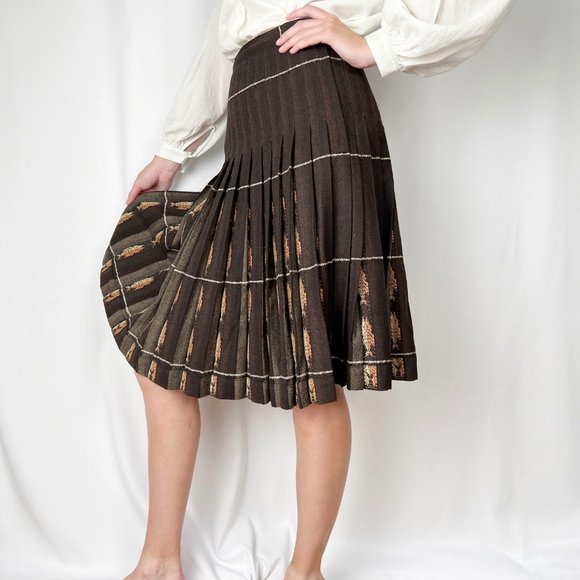 Vintage Reversible Pleated Wool Midi Skirt High Rise Plaid Preppy Academia Fall