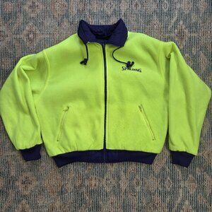 As this item is vintage there are signs of wear. There are various areas of discolouration on the purple exterior, some pilling on the interior, and wearing on the zippers.
