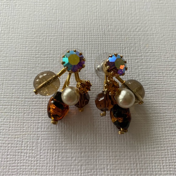 Vintage amber & clear rhinestones brooch & earrings set. In good condition