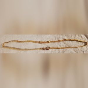 I'm selling a vintage adjustable colored rhinestone gold colored belt. In beautiful condition, maybe worn once or twice. Fully extended its 17 inches (34 inch waist, size 8-10) maximum, down to size 0 waist.