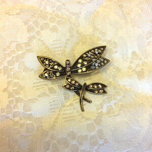Vintage Rhinestone Dragonfly Brass Tone Brooch Timeless VTG Jewelry Pin for Scarfs, Sweaters, Blazers, Jackets or Dresses