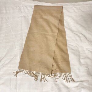 Elevate your winter wardrobe with this luxe vintage camel scarf, accented with subtle silver rhinestones throughout for a touch of sparkle. Made from an ultra-soft blend (unlabeled), this piece features fringe ends and a neutral tone that pairs effortlessly with any outfit. Perfect for adding warmth and glamour to chilly days.