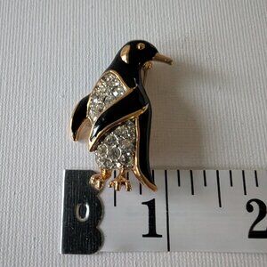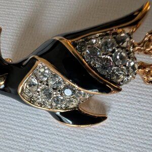 Vintage Rhinestone Penguin Brooch – Coro Style – Black & Gold