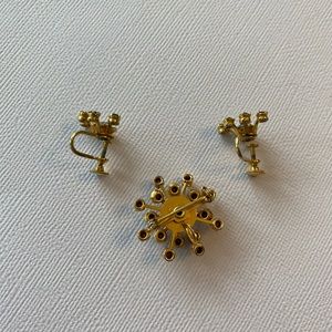 Vintage Rhinestone Snowflake Pin & Earrings